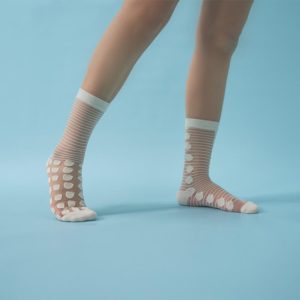 女士不對稱條紋波點透明玻璃中筒絲襪(共2色)