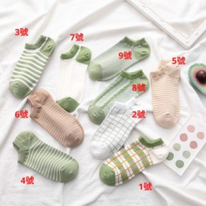 秋冬拼色新潮格仔條紋薄款船襪(共9色)