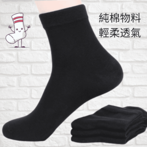 男女士日系黑白灰透氣休閒商務純棉中筒襪 (3對一包)