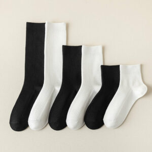 女士日常斯文百撘黑白純色襪 (共6色)